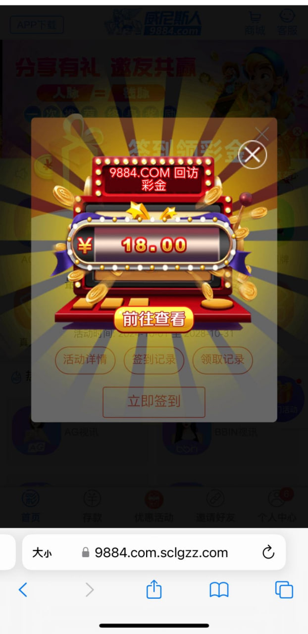 威尼斯人9884 好久没登录了 之前充值过 弹窗领到了18 有号的可以去看看 网址 9884.com
