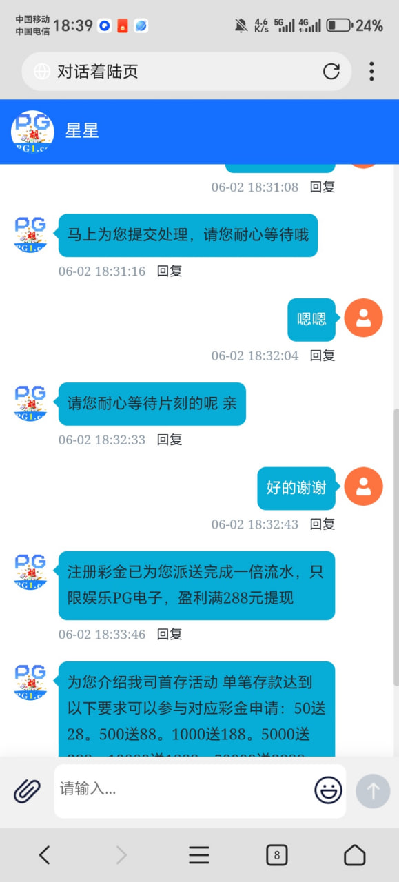 我没接到电话,挂壁了看到这个台子,碰瓷试试给了18,提现330 一分钟不到秒到账,碰不到的老哥别中出我~ pg1.cc