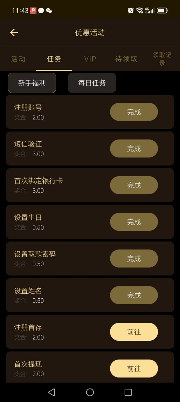 注册好去任务里绑定信息领取。一共可以领14.5。最低5元进游戏