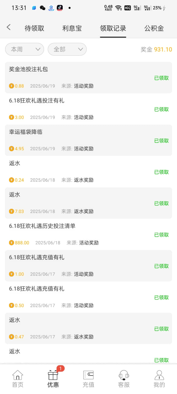 历史投注彩金前天领了888有号的上去看一下