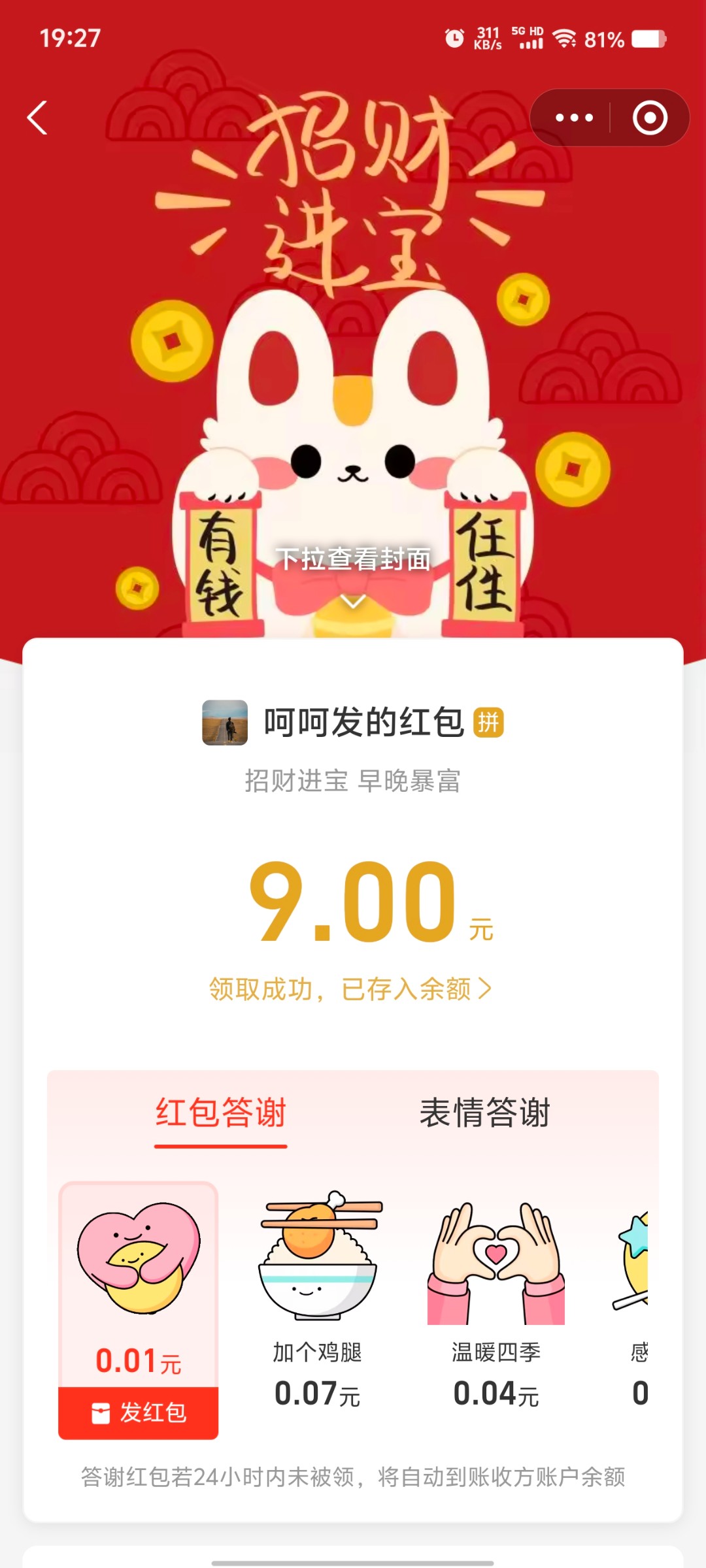在我挂壁时候 来一份香喷喷红包