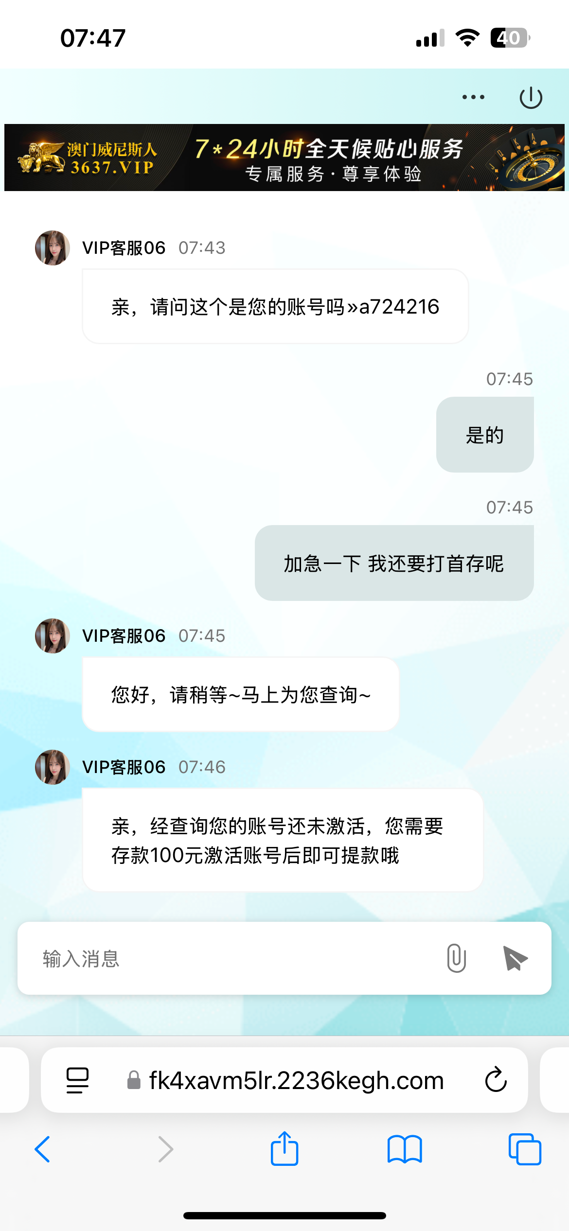 威尼斯a724216 让我存款后才能提现 陈总帮我处理下