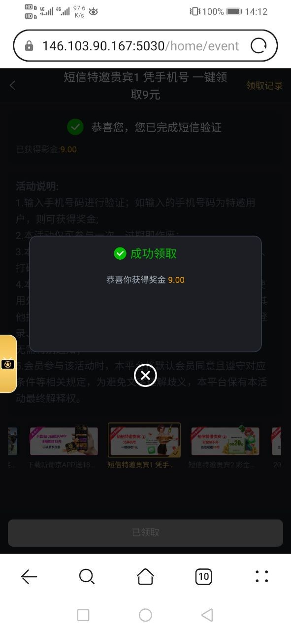 优惠→新人→查特邀送9