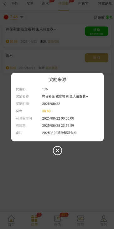上号就有自助领取。十块二十的充过,每天抢红包抢到金额里面包含连起来的13 34 48就能申请十倍加赠。链接:1348.com