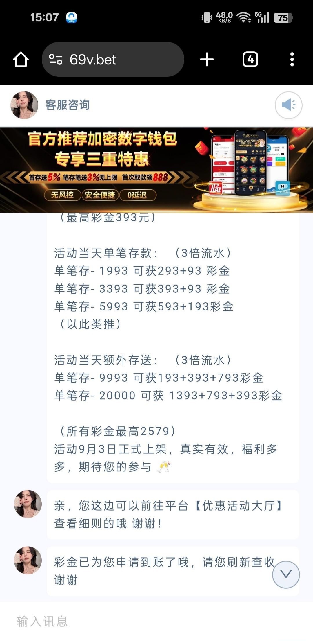 链接69v.com联系客服发账号领取电话彩金即可,我没充值过送了12