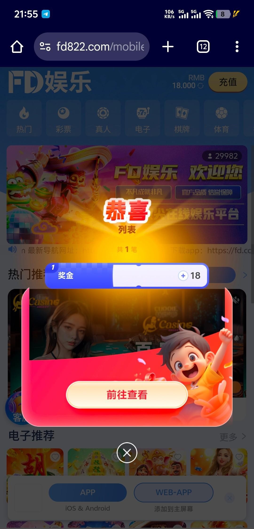 拦截跳出来的,注册找客服送了18彩金。优惠里有这个活动FD822.com