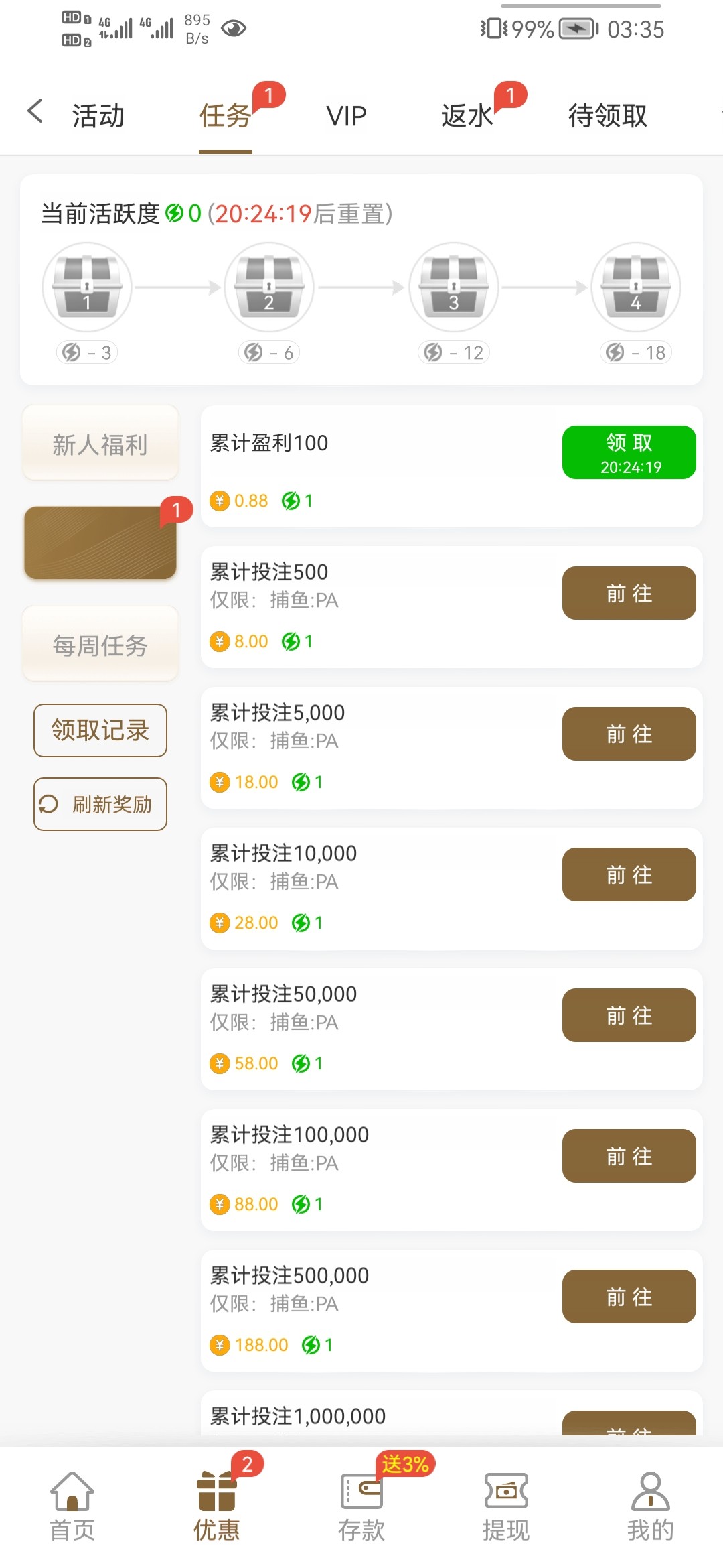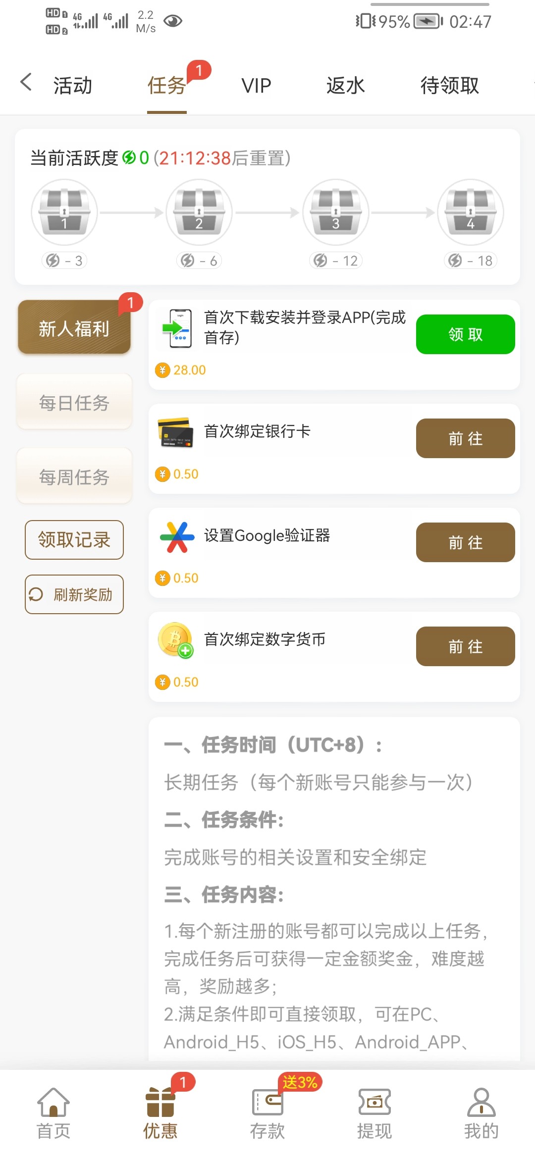 优惠→任务→自助领取即可