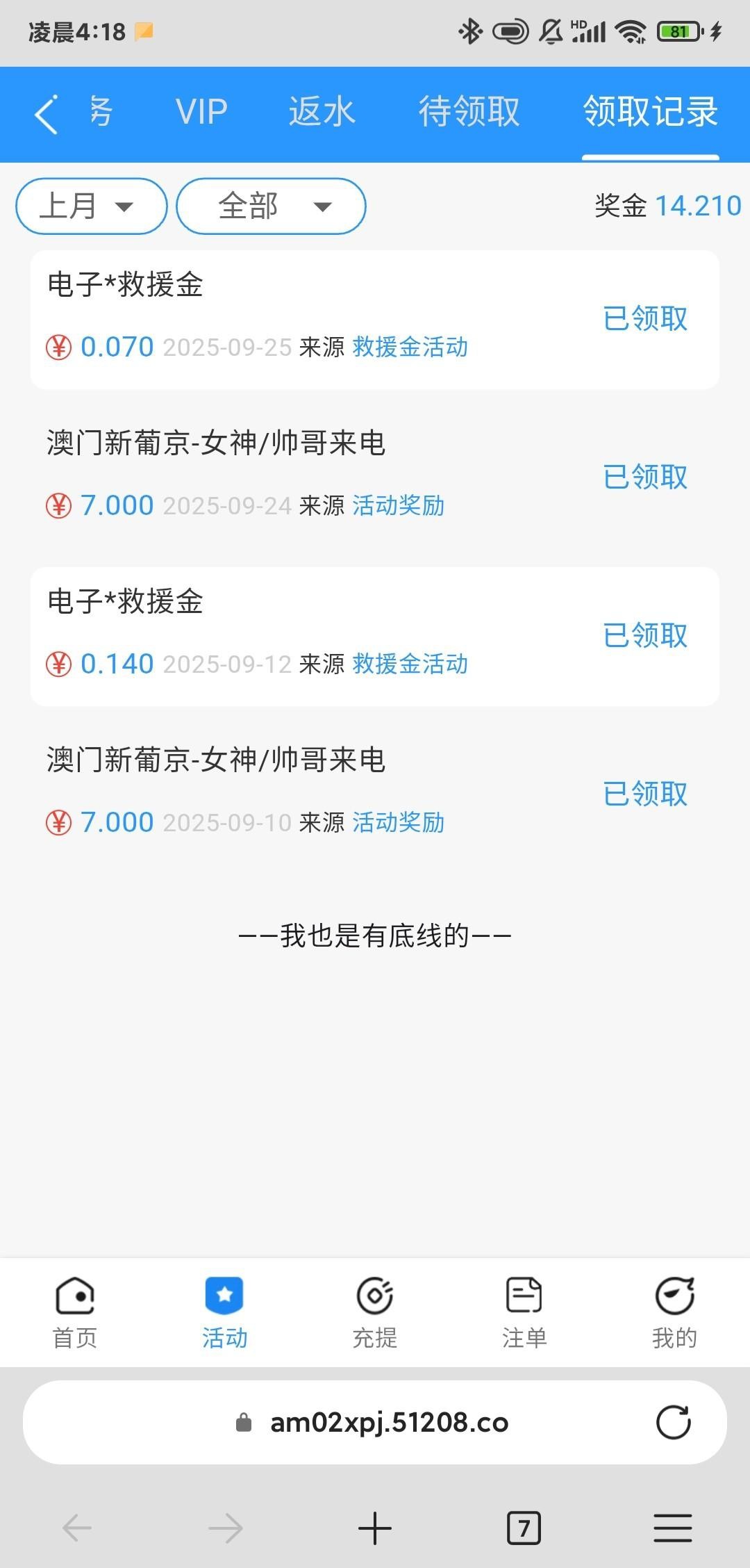 短信特邀彩金以前领过,提过,充值过!得吃的老板赏口饭吃。