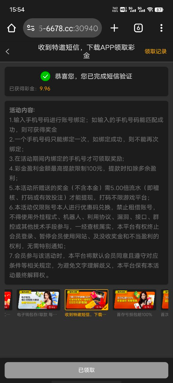 我是收到短信的,碰瓷的话自测6678.com
