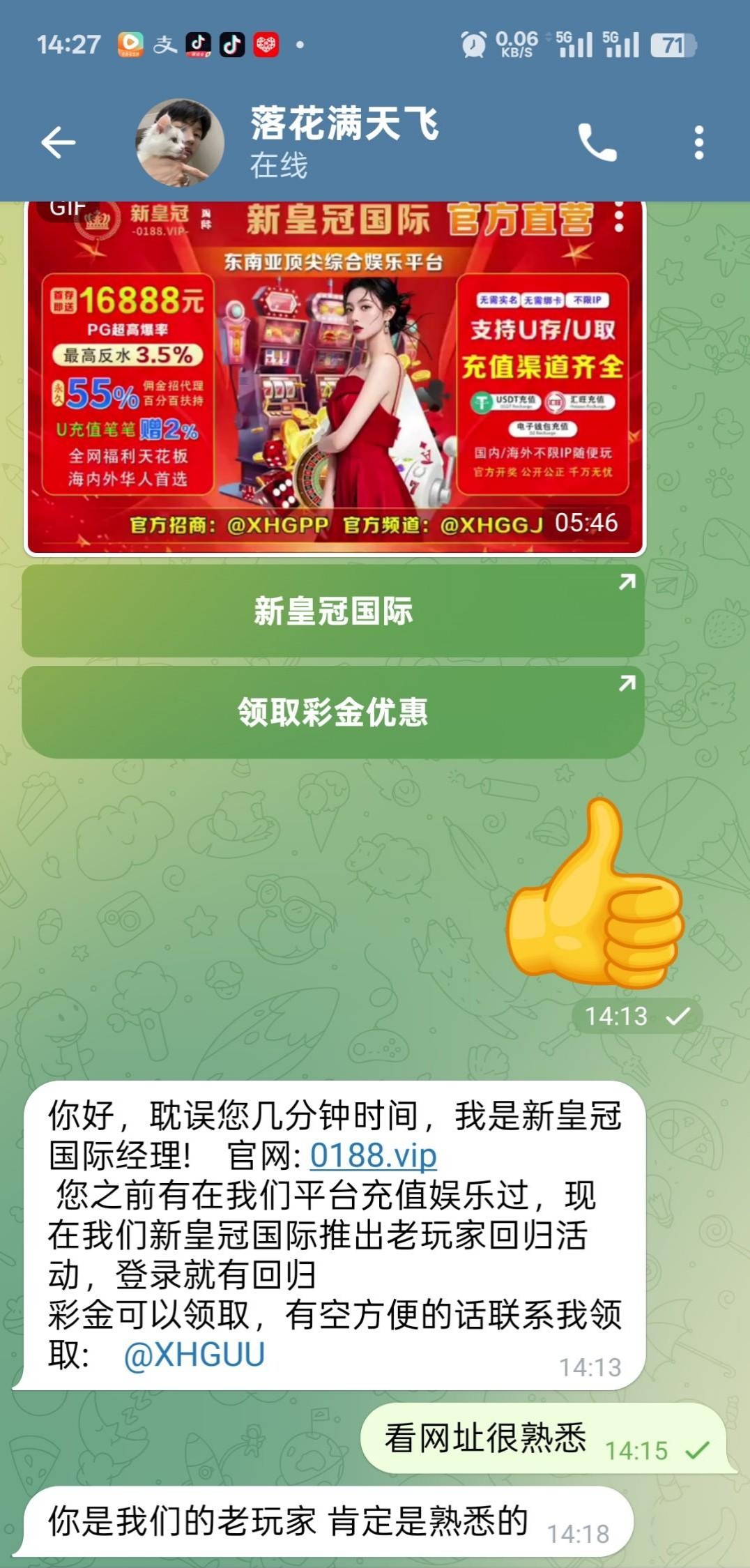 新皇冠0188.vip 在平台注册历史有过充值的老哥可联系飞机客服领取回归彩金,彩金随机,