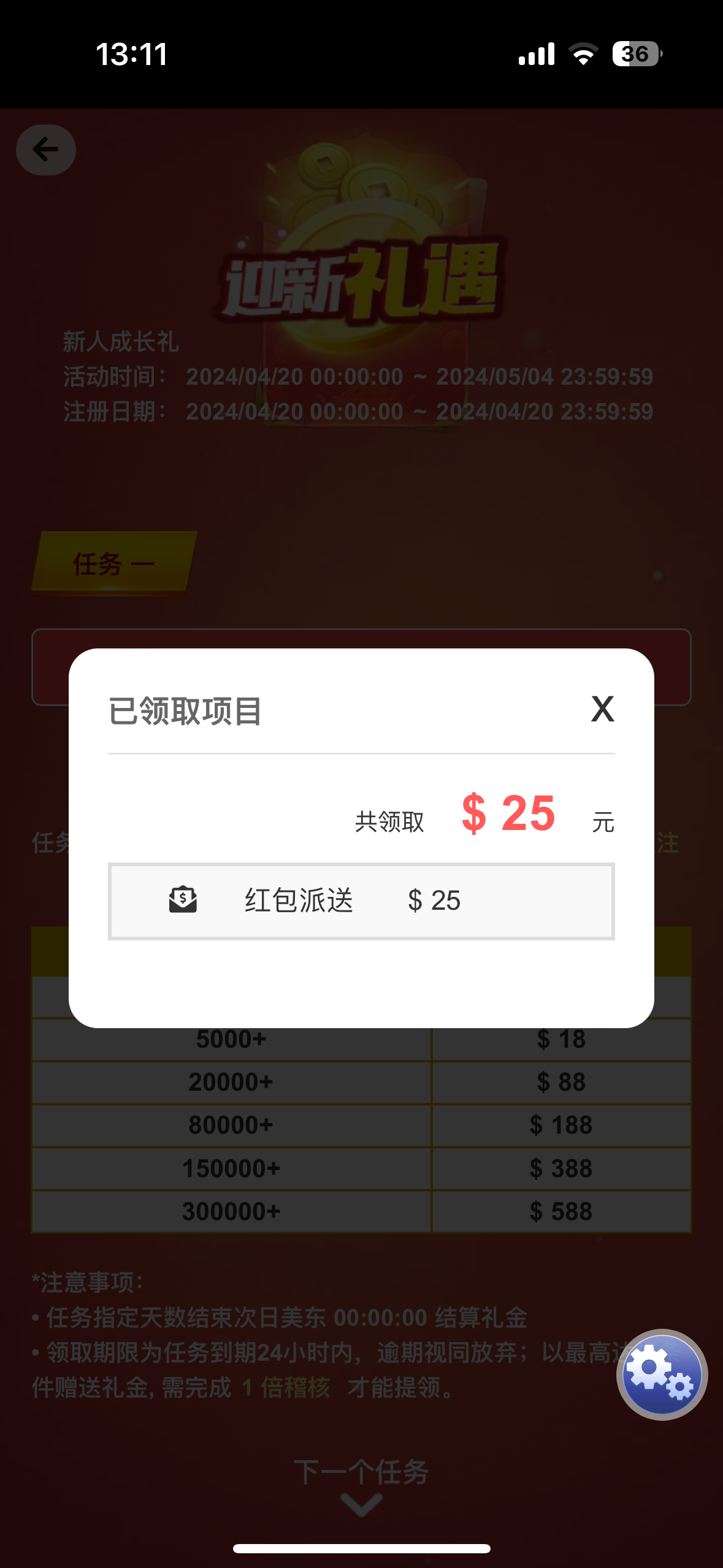 手机号码注册,注册成功,弹窗秒25就是特邀,没有的话就是没有或者换号注册都可以,出款自测!