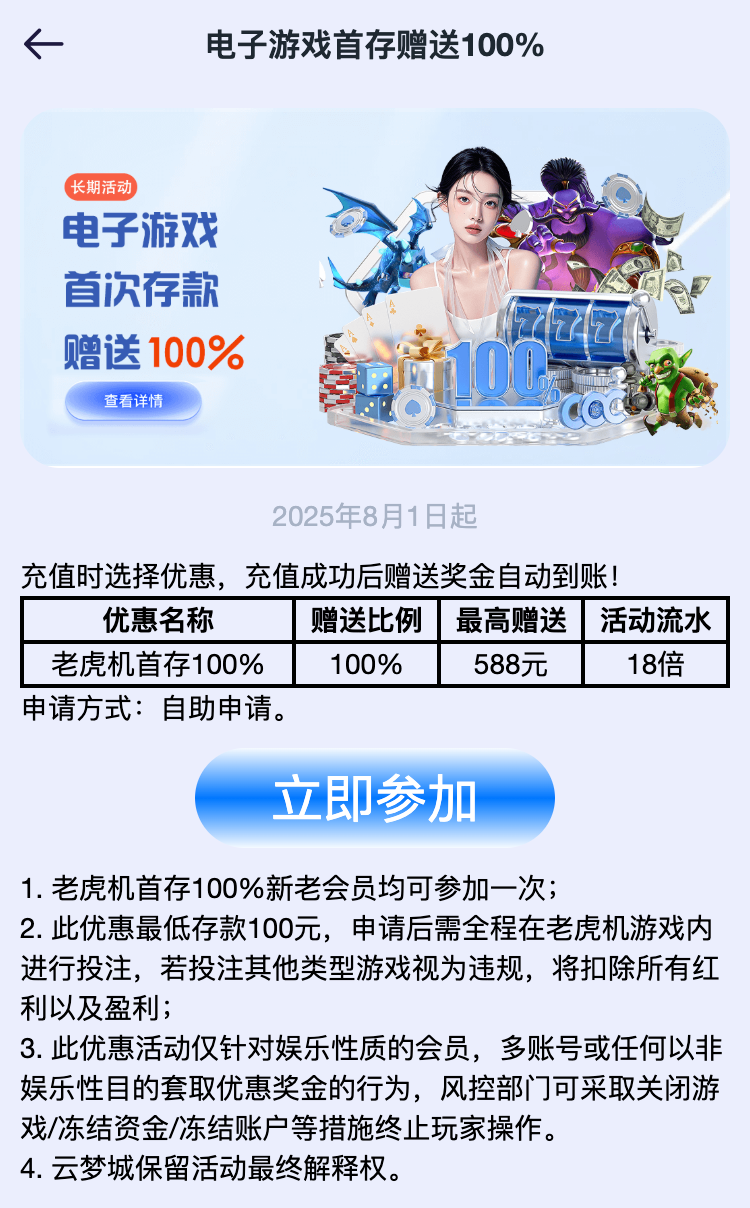 3、该活动仅限投注电子游戏,彩金提款上限100,多余金额需扣除,禁止购买免费游戏,藏分, 互转,违反扣除所有金币;