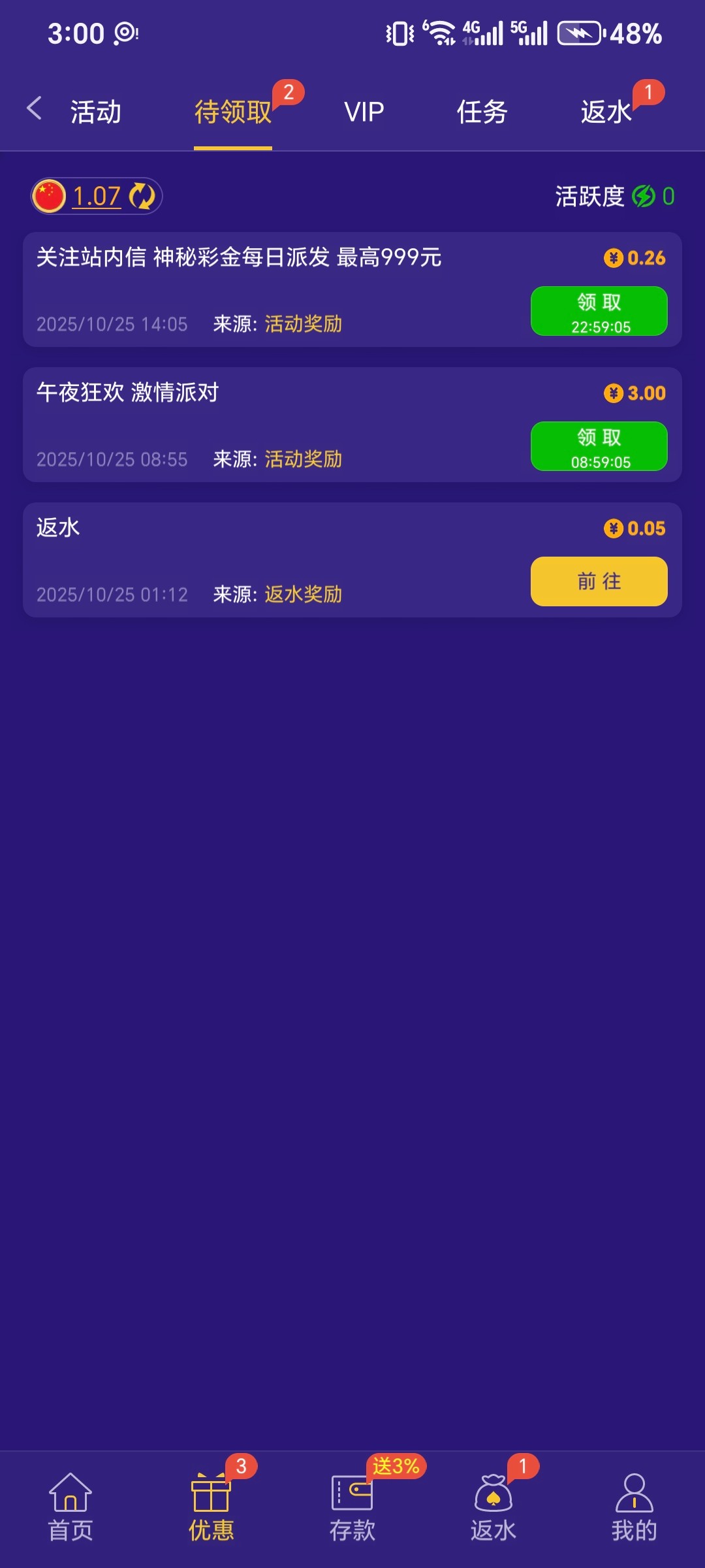 有号的去看看一下,站内信彩金