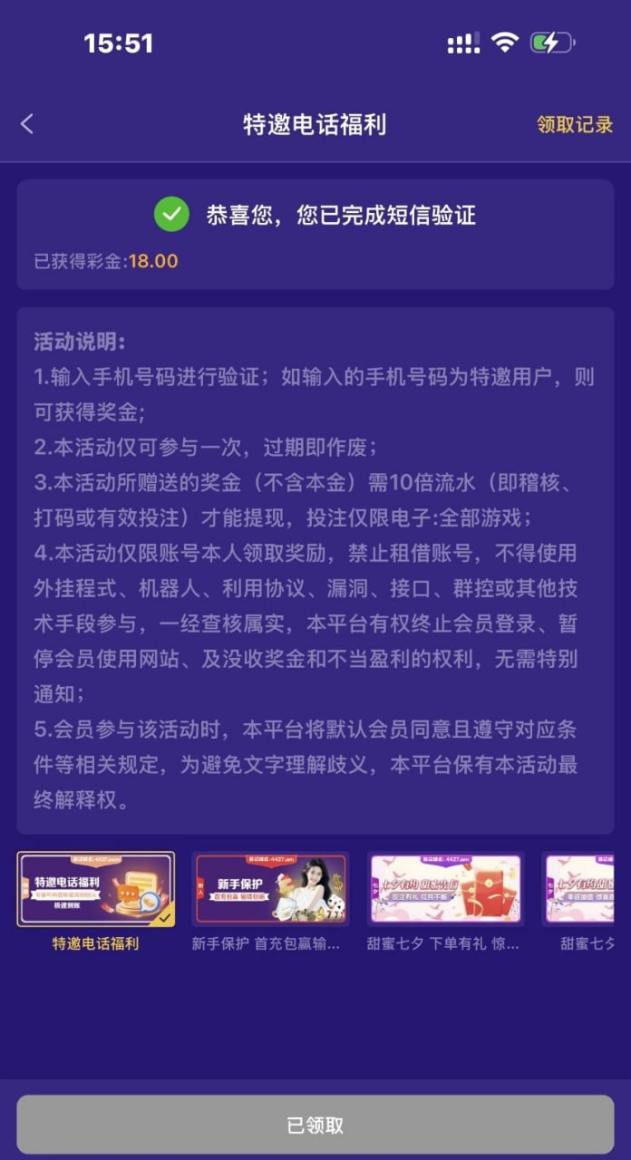 注册绑定银行卡后去优惠验大厅验证手机号领18~888元,论坛有个自助合集自己碰