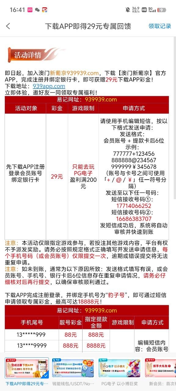下载APP注册然后绑定银行卡按活动要求发短信秒送29 希望各位能打出来反馈
