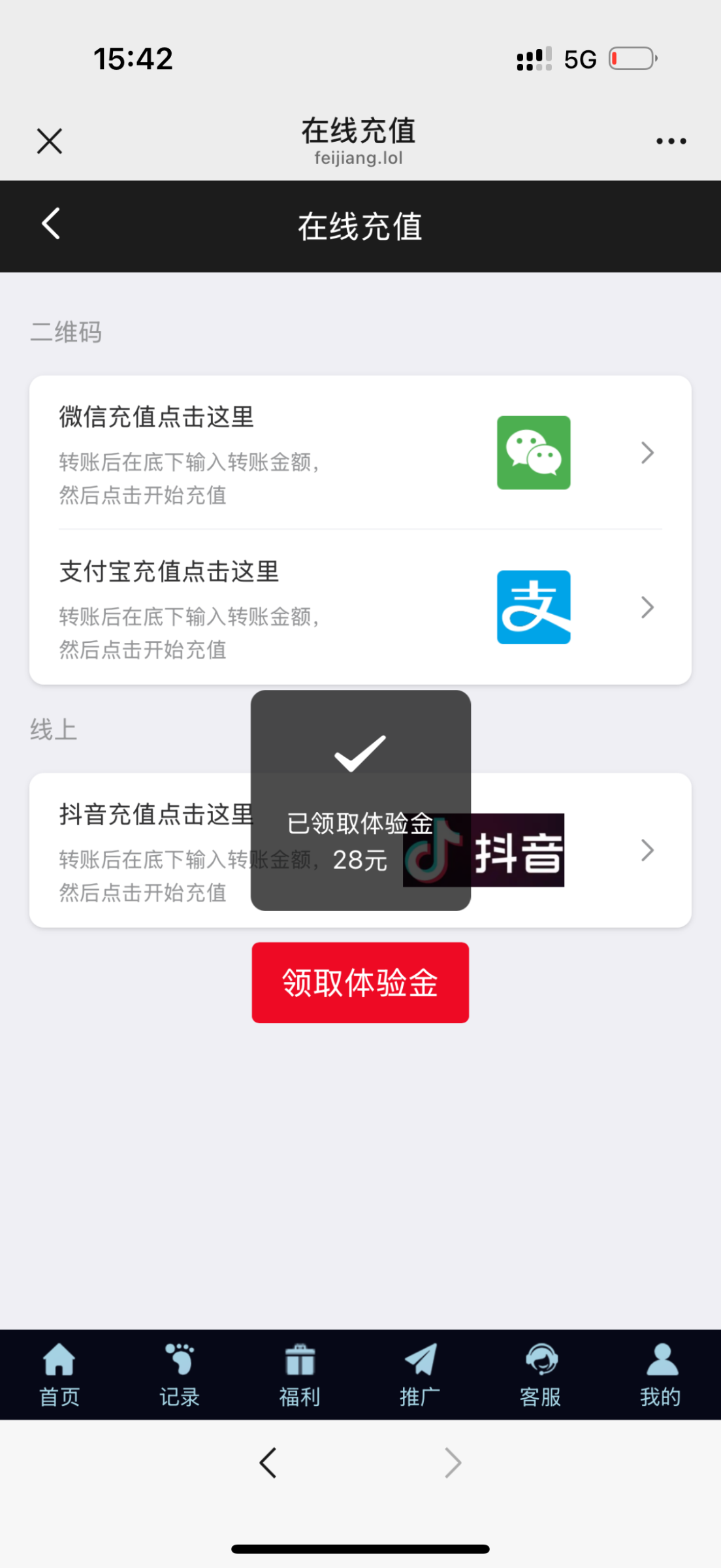微信扫码一键登录,充值里领取体验金秒送28!两个都送
